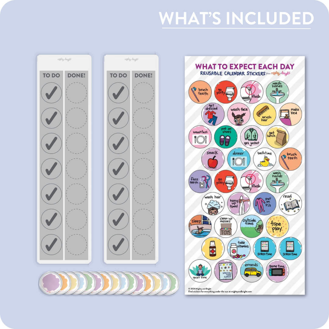 Mighty + Bright's visual schedules are different (that's why we get feedback like Jessye's!). Every aspect of our well-thought-out visual system is thoughtfully designed. Here are a few of the problems our schedules solve: