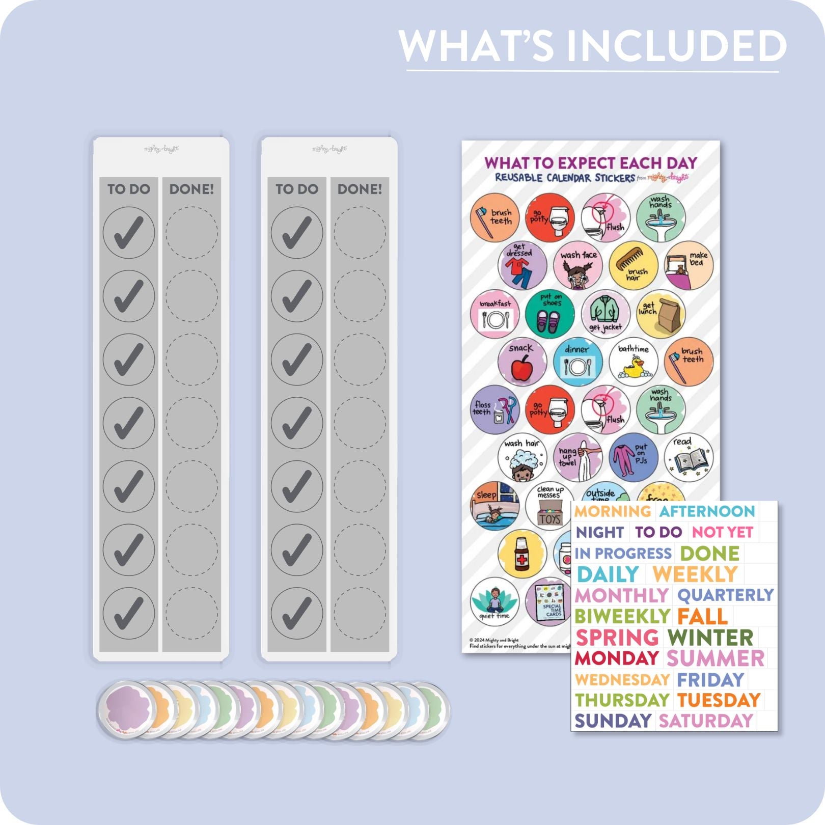 Mighty + Bright's visual schedules are different (that's why we get feedback like Jessye's!). Every aspect of our well-thought-out visual system is thoughtfully designed to get kids on board. Here are a few of the problems our schedules solve: