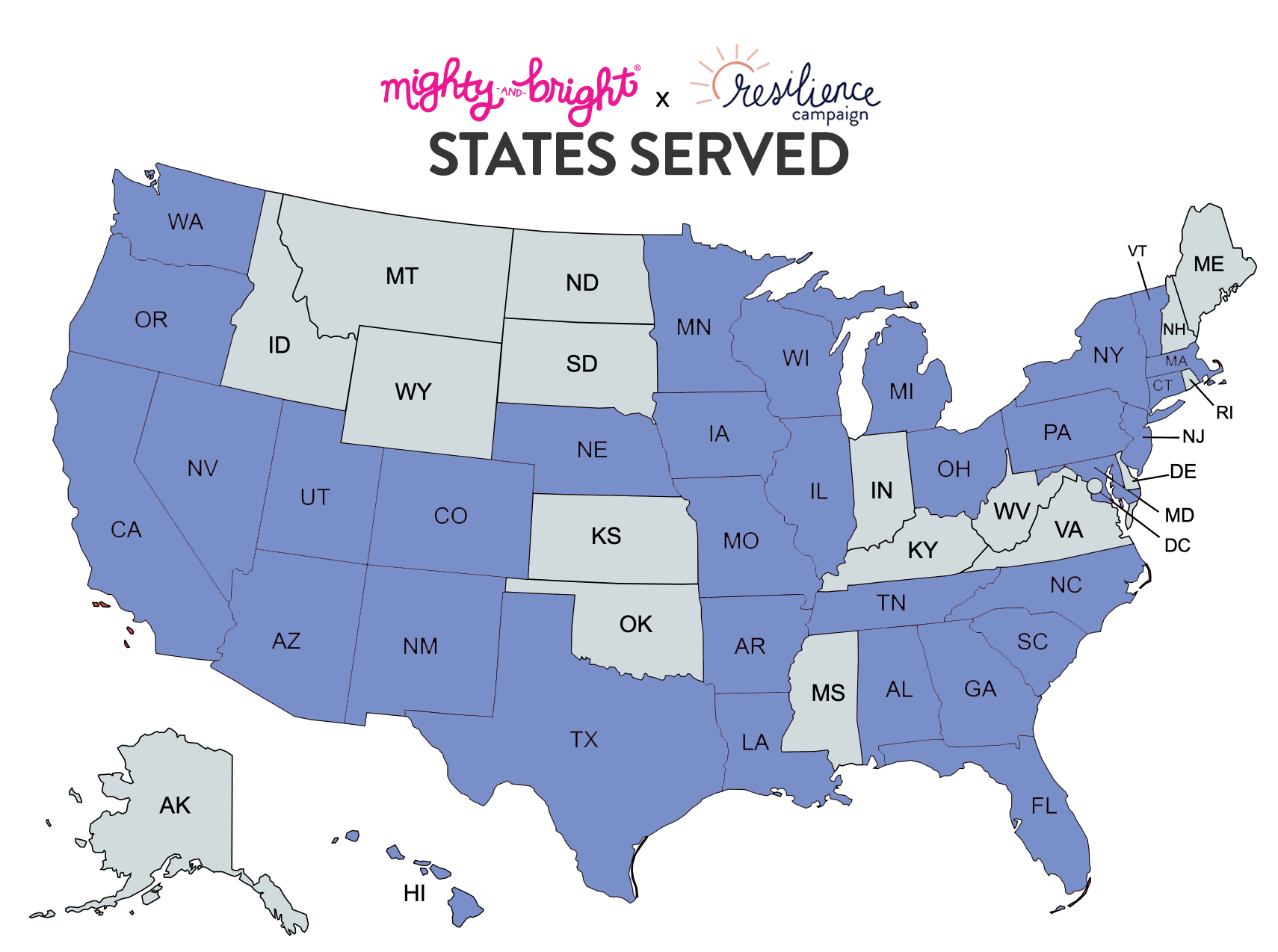 Mighty and Bright's charitable mission, the Resilience Campaign, donates books, visual schedules, and other mental health resources to kids affected by adverse childhood experiences (ACEs) like pediatric cancer.