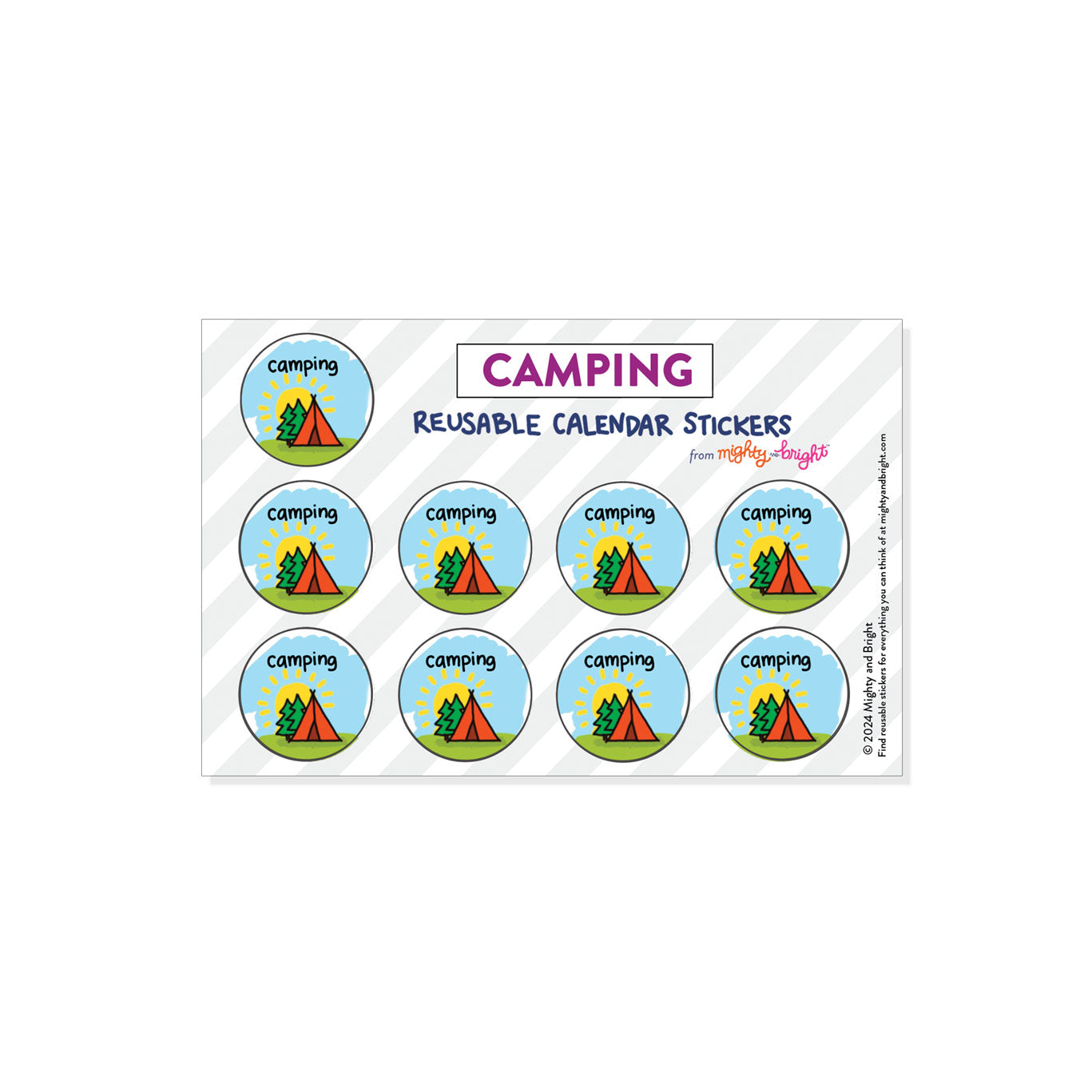 This sheet includes 9 generic camping stickers.