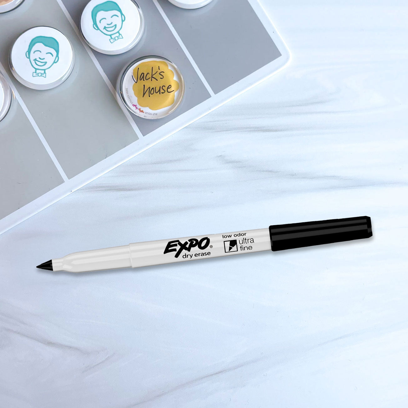 I've been on the hunt for the world's best markers for the Mighty + Bright calendars, and Expo's Ultra Fine Dry Erase marker fits the bill for dry erase. It's fine enough to write on our magnets, doesn't dry out as easily as other dry erase pens, and doesn't smudge *quite* as easily.