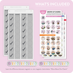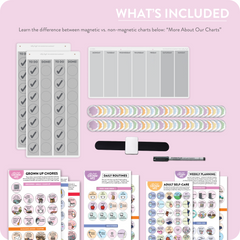 They're also thoughtfully designed. Every aspect of these charts — from the neutral color of the chart itself to our exclusive method of using reusable stickers — is intentional. They're strategically designed to be engaging, so they actually get used long-term. They may look simple, but that's because we've taken all the guesswork out of it for you, so you're ready to go in fifteen minutes.