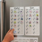 Monthly: fits 2 magnets per day or 4 stickers directly on the chart