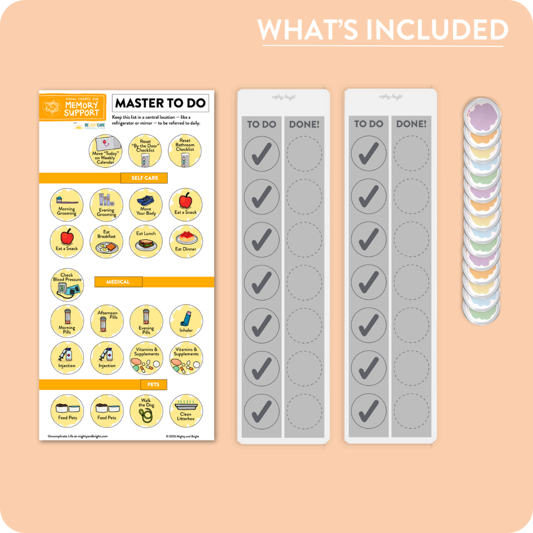 Keeping To Do's in a central location will help a person with memory support needs naturally keep on top of what needs to be done — and what's already been done.