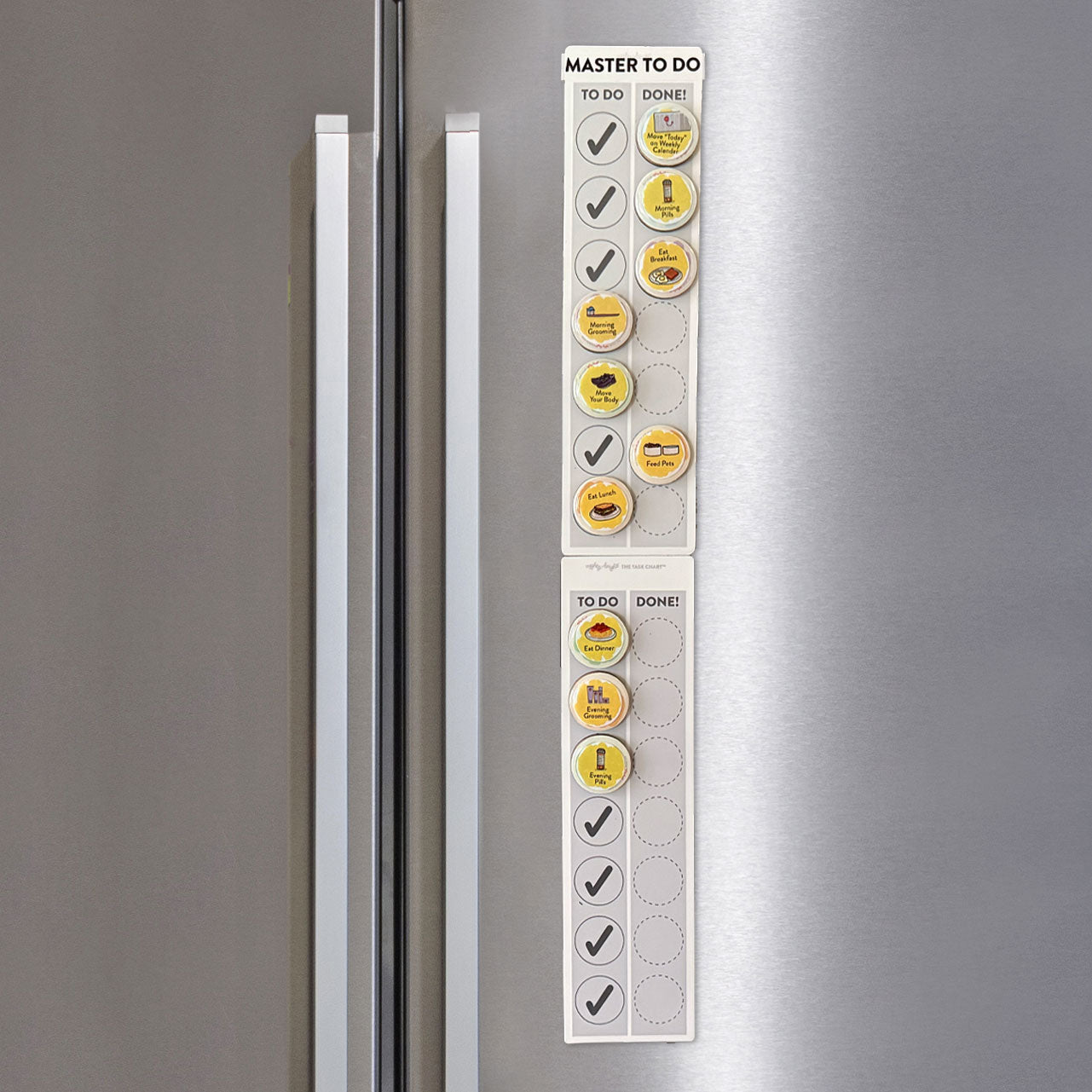 They're also thoughtfully designed. Every aspect of these charts — from the neutral color of the chart itself to our exclusive method of using reusable stickers — is intentional. They're strategically designed to be engaging, so they actually get used long-term. They may look simple, but that's because we've taken all the guesswork out of it for you, so you're ready to go in fifteen minutes.