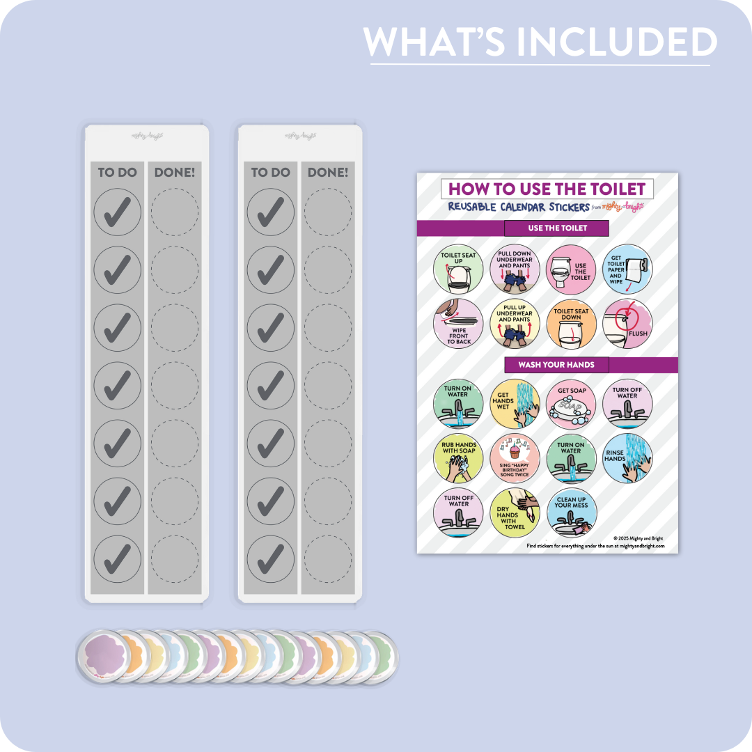 Breaking bigger tasks into manageable chunks is a must when learning a new skill. Help potty-training kids learn to use to the toilet and wash their hands, all with proper hygiene.